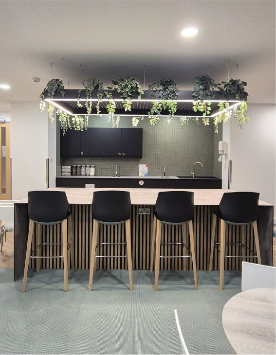 The Hatfield refurbishment included a fresh kitchen breakout area, a contemporary collaborative space, a quiet focus room for deep work, and an open-plan office layout featuring integrated meeting pods. At Welwyn Garden City, we completed a full office and kitchen breakout refurbishment designed for comfort and efficiency, combining stylish finishes with practical layouts.